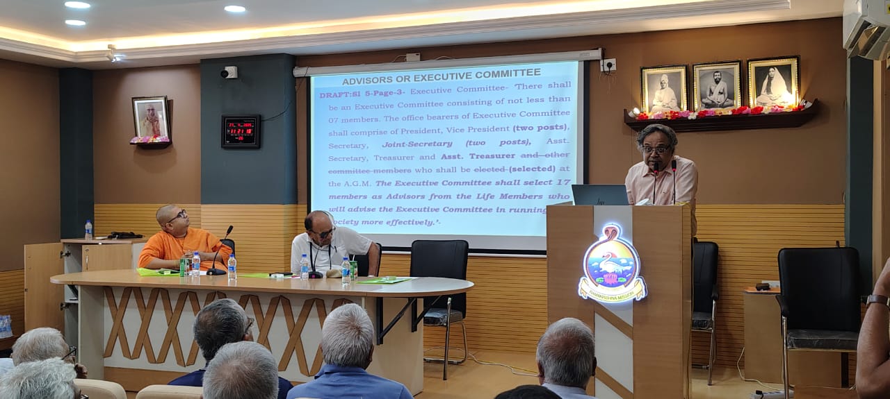 4. The first session on MoA amendments began with joint secretary, NRVP, Sri Anirban Bagchi giving the members a brief context on what necessitated the changes. He informed the house about Sri Aloke Nag’s availability as joint treasurer from May 1, 2025. He also expressed his disappointment over some distasteful comments made on NRVP WhatsApp group/s from time to time that were far below the dignity NRVP and RKM Narendrapur expect from its members and alumni, respectively. He requested everyone to cooperate with the office bearers to successfully run the association with constructive criticism and suggestions.